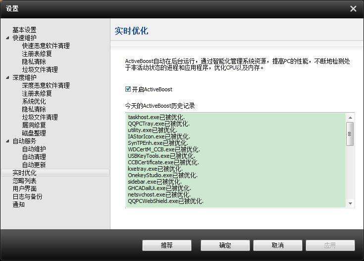 當(dāng)電腦上了年紀(jì)時,很多不必要的程序、無用的文件、注冊表錯誤日志和多余的窗口特效,讓系統(tǒng)運行越來越慢。許多用戶一直飽受幾分鐘才能啟動電腦的痛苦。而Advanced SystemCare【加速】模塊提供四個優(yōu)化項,幫助您清理電腦內(nèi)垃圾文件以及釋放更多的磁盤空間;優(yōu)化注冊表、整理碎片和刪掉所有無用的應(yīng)用程序。