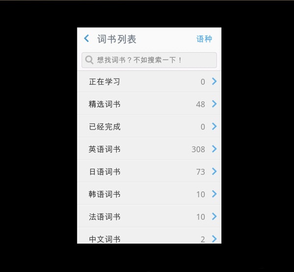 1.獨家支持英語、日語、法語、韓語、泰語、德語、西班牙語等7大語種;2.內(nèi)置小學(xué)、初高中、四六級、新概念、新標(biāo)日、雅思托福、商務(wù)英語、出國留學(xué)等經(jīng)典教材,囊括各行各業(yè)近300本詞書,每個學(xué)習(xí)者都能找到適合自己的內(nèi)容;