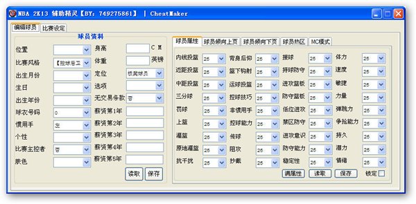 NBA 2K13輔助精靈是一款NBA 2K13球員屬性修改器,能修改包括身高,體重,薪金,能力值等等屬性。