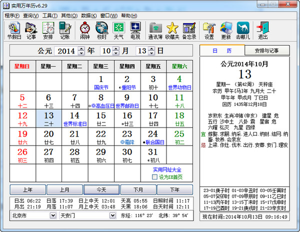 實(shí)用萬(wàn)年歷是目前網(wǎng)上比較受歡迎的一款萬(wàn)年歷軟件。實(shí)用萬(wàn)年歷綠色版采用目前最精確的天文算法計(jì)算,上下一萬(wàn)五千年無(wú)偏差。軟件還包含了公歷、農(nóng)歷、回歷、歷史年號(hào)、公農(nóng)歷節(jié)日、節(jié)氣、干支(生辰八字)、生肖等等很全面的中國(guó)傳統(tǒng)黃歷內(nèi)容。還支持始終、天氣預(yù)報(bào)、記賬鎖屏、電視節(jié)目預(yù)告等等而是幾種生活?yuàn)蕵?lè)功能,是小編見(jiàn)過(guò)功能最多的萬(wàn)年歷軟件。
