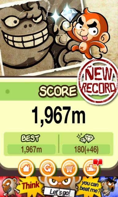 珠寶獵人-悟空,為了尋找傳說中的神秘寶石,來到灌木叢生一切都是未知數(shù)的熱帶雨林探險(xiǎn)!而當(dāng)他得到寶石的那一瞬間,本以為是座巨大石像的金剛居然復(fù)活了..活了..了!為了逃離金剛的兇猛追捕,現(xiàn)在活路只有一條!就是無限制往上蹦!俗話說得,真的太對(duì)了!!人往高處走!猴往高處蹦!操作方法很簡單~只需一個(gè)手指在屏幕上滑動(dòng)就可以。關(guān)注小猴掉落的位置,手指一劃,蹦床一張,悟空落到蹦床上,就可以一直往上蹦了.噢,那該死的樹枝,毒香蕉一直在阻礙悟空,一定要小心,加油! 這款悟空蹦蹦蹦安卓版手機(jī)版移植于iphone游戲,快下來玩玩吧.