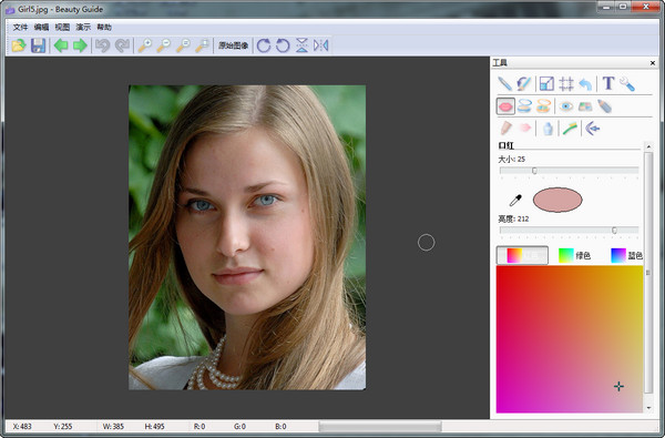 Beauty Guide 中文漢化單文件綠色便攜是一款人像美容軟件,可以給照片去斑、上色,增加人像的眼影,光滑皮膚,增白牙齒等。適合需求簡(jiǎn)單的朋友。但是易于上手,他集合了Cosmetic Guide和Make up的功能。