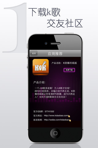 K到爆是國內首家基于移動互聯(lián)網的K歌交友社區(qū),該軟件集成了歌曲下載、錄音合成、歌曲分享至微博、K歌比賽、位置交友、私信聊天、達人推薦等功能,讓你隨時隨地K歌交友兩不誤! 目前覆蓋蘋果和安卓平臺,包括付費版《K到爆》《K到爆HD》免費版《K到爆歡唱版》《K到爆歡唱版HD》.
