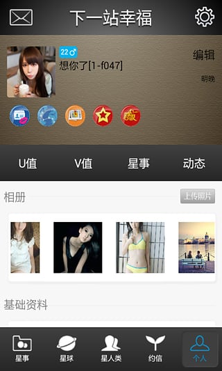 個人中心:詳細(xì)的個人資料及相冊展示,張揚(yáng)你的個性,展現(xiàn)你的個人魅力;全新社交溝通模式,告訴你真實(shí)社交新玩法。