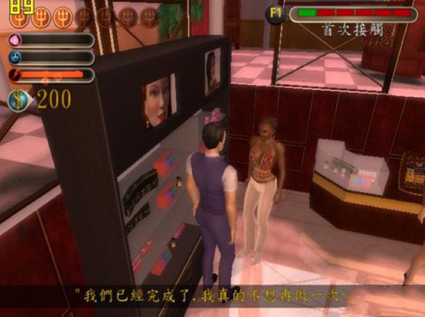 七宗罪游戲的最大目的就是與身邊的女性進行“深入交流”行為。不過她們絕不是發(fā)情的母狼一樣見人就撲上去的,你必須通過接近她并討論她們喜愛的話題,逐步提升她們對你的好感度,才能逐漸對她們玩出新的花樣,撩動她們的欲望。另外,天下應該沒有什么女人是喜歡一個一毛不拔的賤男的,你的褲兜里也隨時要拿得出能買得起一瓶1862年陳釀的資金。掌握了好感度升降的要點之后,通關也僅僅是時間問題了。另外,也許是歐美人注重過程多于結果,你不用指望攻略完成后可以象日式戀愛AVG那樣看到什么精美的CG,這款游戲一切樂趣僅在于攻略的經(jīng)過所帶給你的滿足感,至于通關后會有什么,你就不要寄予厚望了。