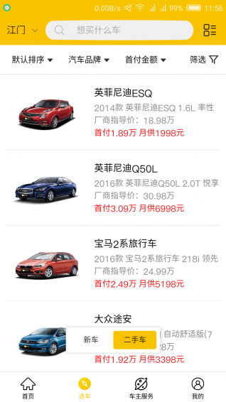2、首頁新增汽車品牌快速選擇;