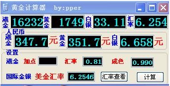 黃金價格計算器 1.0下載 黃金計算器集合了自動計算港金,國際現(xiàn)貨金銀價格,換算成人民幣價格方便大家使用,港金是適用福建莆田人,深圳,一帶收實物黃金的,當然大家也可以根據(jù)上面算出港金的價格知道目前市面上收黃金什么價。