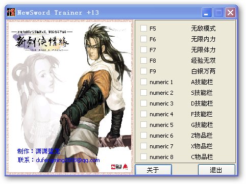 新劍俠情緣修改器 綠色版 +13 新劍俠情緣修改器是只針對(duì)新劍俠情緣的作弊器,該軟件提供13項(xiàng)屬性修改功能,包括無(wú)敵模式,無(wú)限內(nèi)力,無(wú)線血等功能修改。