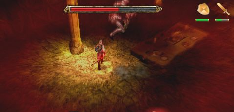 先在1樓給它點傷害,然后前面的石門會打開,這時轉(zhuǎn)動升降機去二樓……轉(zhuǎn)機關(guān)的時候一如既往地出小怪。殺之。上到上面后,繼續(xù)和狼先生打,不過這回有小怪出來摻和。小怪是殺不完的,不用理會。專心對付BOSS。方法和在下面時一樣。當(dāng)把它的血減到了1/3時,它就會使用沖出火池撞擊我們的招術(shù)。不過打法還是和上面一樣……只要有耐心,堅持不下去不要放松,那么最后的勝利還是屬于我們的。