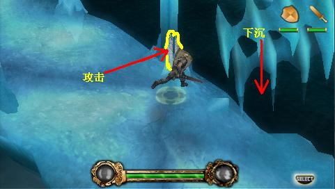 只要把山路上的敵人全滅就可以開啟下一道門(究竟是只要把巨人干掉就能開門,還是敵全滅就能開門,這點沒有考證……不過不管怎樣,全滅敵人是最好的選擇)。門的那邊就是加血點。路上的敵人完全不需要理會,只要一直前進就行了。這時會發(fā)生過場事件,然后主角來到湖底。這里的地型和之前去過的那個是一樣的,而且也是沒有,一路前進就會進入BOSS戰(zhàn)。