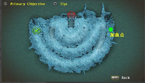 來到孤島上以后,查看地圖可以看到目標(biāo)地點,路上敵人很多,不過可以打打,順便換換武器。大概走那么一段,就要和隊友分開了。這時就用不了團體攻擊UP了,只能用怒氣攻擊。繼續(xù)前進,到了目標(biāo)地點,從左側(cè)上巖石后,就會進入BOSS戰(zhàn)了。