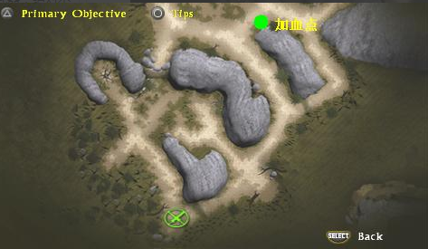 出來后直接從右邊的路上去。因為左邊有太多的敵人,這關(guān)應(yīng)該能明顯感覺到難度提升了。要多利用↑鍵(蓄)的團隊攻擊,有叉路的話只走一邊就好,兩邊都走就打雙份或三份的敵人……不過要是對自己的操作有自信,把敵人全滅也是不錯的選擇。來到地圖右上角后有一個大轉(zhuǎn)盤。把礙事的敵人干掉,然后命令3名同伴一起去推轉(zhuǎn)盤。最后就可以通過右邊的門了。進去后還是山路,不過前方會有一個補血點,有了這個就不怕了。