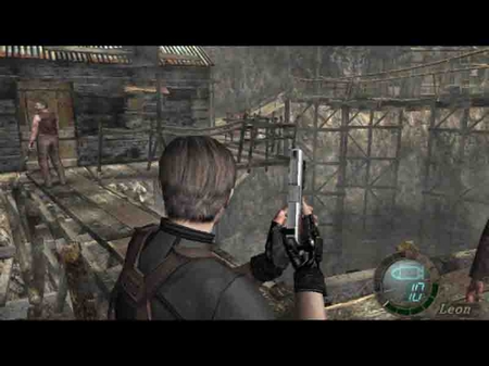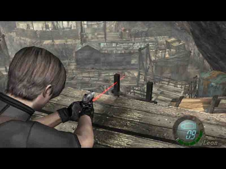 4.再回頭,殺掉B屋上丟炸藥的敵人.以后LEON每次走到圖中紅點的地方就會刷新敵人(注:只能殺小屋B這里的敵人,其它的不能殺,殺光后出門再回來刷.就像WOW中的刷副本那樣)