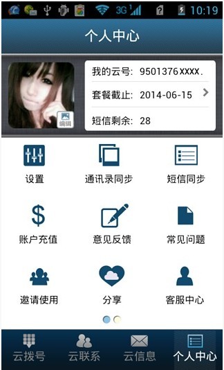 95013云號(hào)=主號(hào)碼+副號(hào)碼1、 主號(hào)碼:用戶的真實(shí)手機(jī)號(hào)碼,擁有設(shè)置Ip智能撥號(hào)功能。用戶使用主號(hào)模式外呼時(shí),系統(tǒng)會(huì)根據(jù)雙方的號(hào)碼地自動(dòng)判斷是否加撥長途IP前綴。