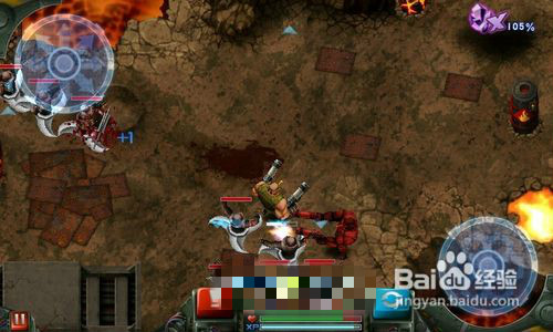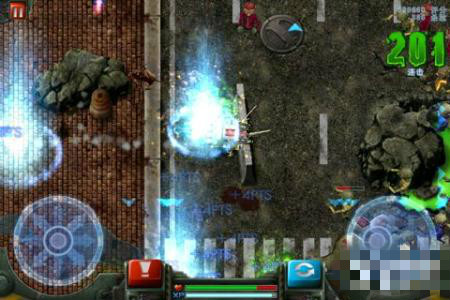 紅色暫停按鈕——進入暫停菜單右下虛擬搖桿——控制角色射擊、轉(zhuǎn)身