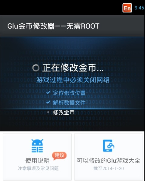 3.啟動GLU金幣修改器并等待修改成功