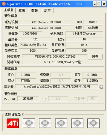 GPUinfo 顯示卡信息檢測工具 1.0beta10 綠色版 GPUinfo 顯示卡信息檢測工具 1.0beta10 綠色版