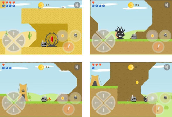 頭盔騎士游戲中,你需要通過(guò)游戲下方的左右兩側(cè)控制按鈕來(lái)幫助頭盔騎士的跑、跳躍、戰(zhàn)斗和施展魔法等等的操作。避免途中遇到的各種危險(xiǎn),到達(dá)目的地。游戲中還可以收集藥水來(lái)補(bǔ)充生命值,收集金幣等等。雖然畫面簡(jiǎn)單,但是如果你能夠耐心玩幾分鐘的話,發(fā)現(xiàn)這款游戲的可玩度還是不錯(cuò)的!