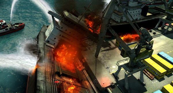 海港火焰撲滅玩家一定要切記一點(diǎn),千萬(wàn)不能讓火焰擴(kuò)散到左邊停泊的巨船之上,否則的話,整個(gè)海港就徹底完蛋了(因?yàn)榫薮鹧婧茈y徹底撲滅,而且會(huì)連帶整個(gè)區(qū)域火焰的燃燒以及你滅火部隊(duì)的失衡)
