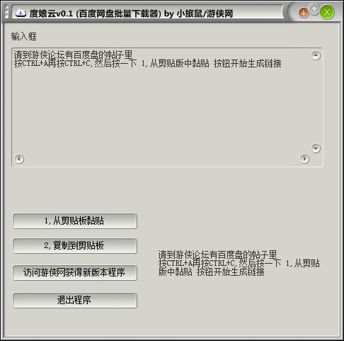 1,請到游俠論壇有百度盤的帖子里按CTRL+A再按CTRL+C,然后按一下 "1,從剪貼版中黏貼" 按鈕開始生成鏈接