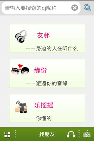 3)友鄰聽(tīng):查看并點(diǎn)播在線用戶正在聽(tīng)的歌曲,可按空間距離篩選聽(tīng)友,支持聊天留言交朋友。