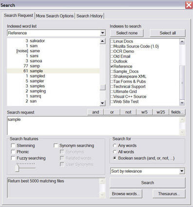 dtSearch可以在千兆字節(jié)數(shù)量級(jí)的數(shù)據(jù)源中進(jìn)行搜索,包括文字處理程序、數(shù)據(jù)庫(kù)、電子表格、電子郵件(包括附件)、ZIP, XML, PDF, HTML, Unicode 編碼文件等。它具有包括編入索引、未編入索引、域操作和全文本等搜索選項(xiàng)。突出顯示所有搜索到的文件;當(dāng)結(jié)果為HTML, XML 和PDF文件時(shí),顯示其鏈接和圖像。通過(guò)其內(nèi)置的Web Spider工具,您可以使用其他網(wǎng)站資源作為即時(shí)搜索的數(shù)據(jù)源。