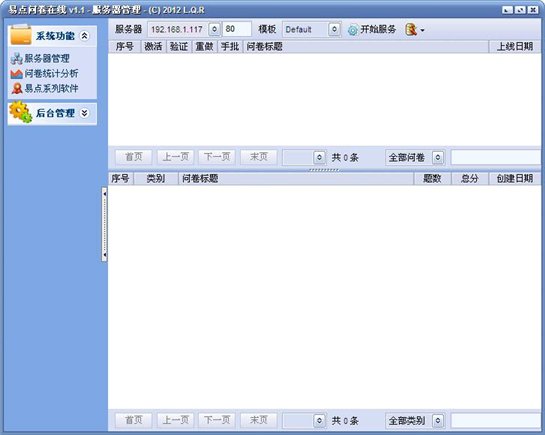 易點(diǎn)問卷在線(問卷調(diào)查軟件) 1.1 綠色版 易點(diǎn)問卷在線用于各行業(yè)對(duì)單位內(nèi)部或互聯(lián)網(wǎng)個(gè)體進(jìn)行在線問卷調(diào)查。各種教育及心理測(cè)試、各行業(yè)問卷調(diào)查不再?gòu)?fù)雜,問卷服務(wù)器簡(jiǎn)單部署、問卷快速創(chuàng)建、統(tǒng)計(jì)報(bào)表一鍵輸出簡(jiǎn)單易用,軟件讓專業(yè)變得平凡,一起從繁瑣中解放出來吧!