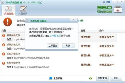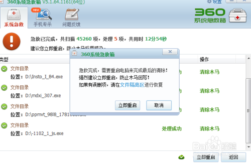掃描結(jié)束,就會(huì)自動(dòng)處理完問(wèn)題,之后重啟電腦即可