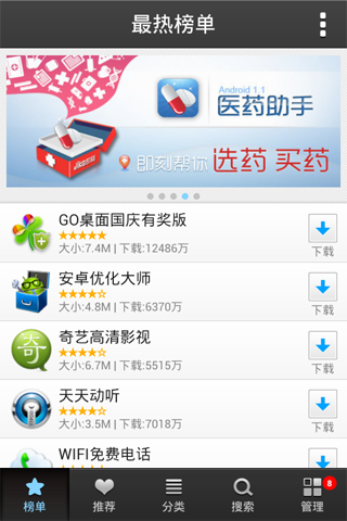 5.輕松管理:提供貼心的應(yīng)用更新提醒,批量安裝、批量刪除功能,讓您輕松管理本機(jī)應(yīng)用。
