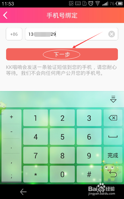 進(jìn)入手機(jī)號綁定頁,輸入你要綁定的手機(jī)號,點(diǎn)擊“下一步”,注:系統(tǒng)會自動向該手機(jī)發(fā)送一個六位數(shù)的驗(yàn)證碼,五分鐘之內(nèi)有效
