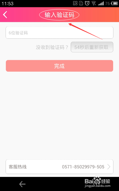 輸入6位驗(yàn)證碼,點(diǎn)擊“完成”,注:如果沒有收到驗(yàn)證碼,可根據(jù)倒計時提示,在一定時間后重新獲取