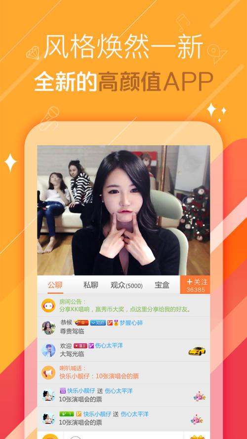 1、支持在線K歌,炫彩界面,讓您隨時隨地觀看精美絕倫的真人現(xiàn)場直播;近百位美女主播攜百萬粉絲全天在線,為您打造一個全新的視頻互動社區(qū)!2、支持公聊、私聊、飛屏、小喇叭等多種聊天方式,聊天交友更順暢;