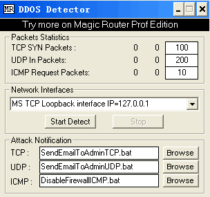 DDOS Detector 1.0 綠色版_SYN攻擊包分析 DDOS攻擊探測器是一個(gè)方便和可靠的應(yīng)用程序旨在通過聽所選適配器檢測SYN數(shù)據(jù)包。用法很簡單: 運(yùn)行 exe 文件,選擇要掃描的網(wǎng)絡(luò)接口和應(yīng)用程序監(jiān)視以及列出 SYN 數(shù)據(jù)包報(bào)告。