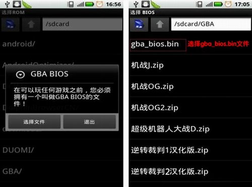 2、兩個(gè)下載完成后, 首先將GameBoid漢化版.apk安裝到手機(jī)上。 然后在SD卡中新建一個(gè)文件夾,將gba_bios.bin 放入其中即可。(例如:新建一個(gè)文件名為GBA的文件夾,則gba_bios.bin文件的存放位置為SD卡/GBA/gba_bios.bin)