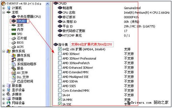 用EVEREST Ultimate Edition查看自己的CPU情況分析,一般建議查看CPUID,這樣查看更清楚詳細。通過查看指令集可以判斷自己的CPU是否大強。其實是支持的指令越多,代表你的CPU越好。這些查看電腦硬件信息的菜單我就不多說了,大家可以自己點擊菜單里的選項去慢慢查看。如果有不懂請到論壇去發(fā)貼求助。