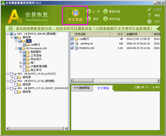 如何恢復(fù)數(shù)據(jù)?恢復(fù)目錄功能。勾上要恢復(fù)的目錄和文件,點“恢復(fù)數(shù)據(jù)”按鈕,就可以把數(shù)據(jù)恢復(fù)到別的盤里面。