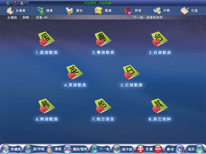 作為一款專業(yè)的KTV點歌軟件,阿蠻歌霸!單機版點歌系統(tǒng),可廣泛應(yīng)用于歌廳、歌城、酒吧、家庭卡拉OK以及多媒體會議室等場所。