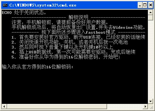 5、準(zhǔn)備好你從華為得到的16位解鎖密碼,開(kāi)始吧!