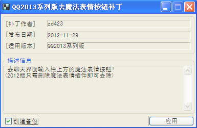 QQ2013去魔法表情補(bǔ)丁 1129綠色版 軟件大?。?/span>21KB