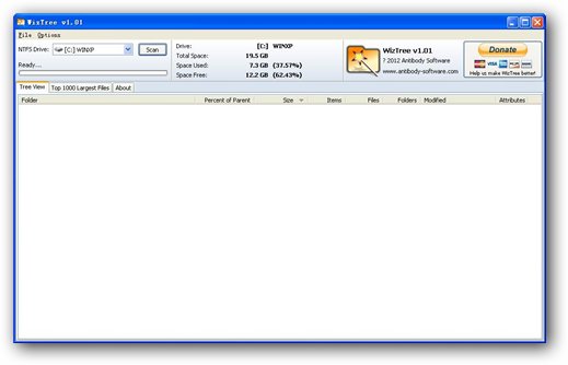 4、完全免費。查找大文件使用方法:運行后,選擇某個分區(qū),點擊“scan”按鈕,等待幾秒就可以看到結(jié)果了,掃描使用的時間在掃描結(jié)束后也可以在界面上看到。而對分區(qū)格式的話,WizTree有一些要求,那就是只能掃描NTFS格式的分區(qū)。