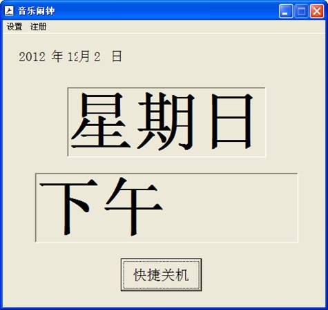 音樂鬧鐘 V2.0 免費(fèi)版 音樂鬧鐘是一款定時(shí)鬧響(播放音樂)、定時(shí)關(guān)機(jī)的軟件.可播放的音樂文件*.mp3、*.mid、*.midi、*.rmi、*.wav、*.snd、*.au等。可以利用主板的定時(shí)開機(jī)功能。