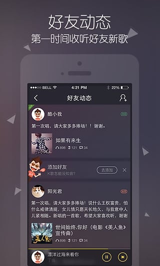 4、流暢的操作,合理的交互設(shè)計,更體現(xiàn)酷我以用戶體驗為中心的設(shè)計理念。