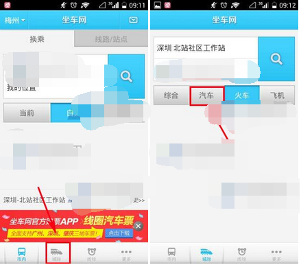 一、坐車網(wǎng)收藏路線的方法1)首先先打開【坐車網(wǎng)】,進去之后點擊【城際】,接著輸入起點與終點擊搭乘方式。(如下圖)