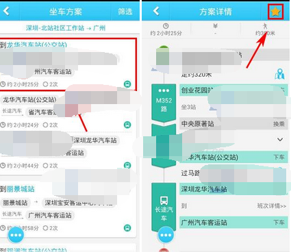 2)然后選擇搭乘方案,進去之后點擊右上角的【五角星】就可以了(如下圖)