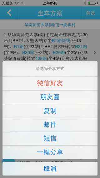 2.坐車方案可以多渠道分享到微信好友,朋友圈和微博啦!