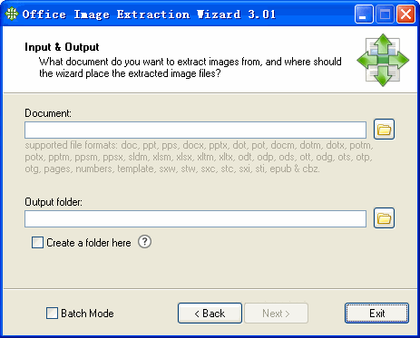對Office 2007/2010格式,如*.docx或*.pptx,可直接另存圖片或重命名為*.zip,再解壓即可獲取圖片資源,而Office Image Extraction Wizard方便之處在支持批處理,能夠一次性從多個Office文檔中批量提取圖片。