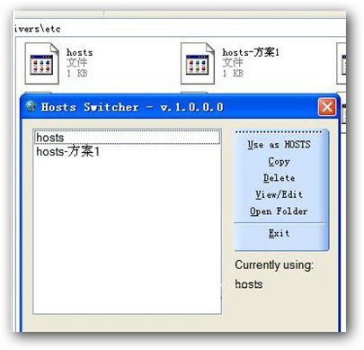 Hosts Switcher還帶有內(nèi)容快速更改功能。你可以先把多種不同的方案分別保存在多個hosts文件中,
