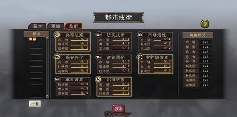 都市技術是根據不同城市獲得的固有技術。每個城市都需要不同的技術,比如前線并城市就需要筑城、特技獲得這些技術,后備城市主要是開發(fā)內政技術和制造裝備的技術。