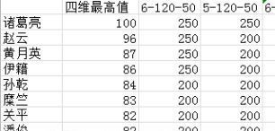 選赤壁之戰(zhàn)劇本的劉備開局,抽取部分武將作樣本,取這些武將的四維最高值(去掉官職、寶物),然后記錄工資,修改參數重復,得到以下數據