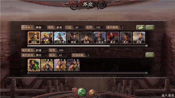 交涉武將更換為劉備之后可以看出,交涉次術,成功率都有顯著提升,其中預計擁有【舌辯】技能的武將會對交涉有所幫助,而【名聲】的高低應該也起到了一定的作用。還得是備哥